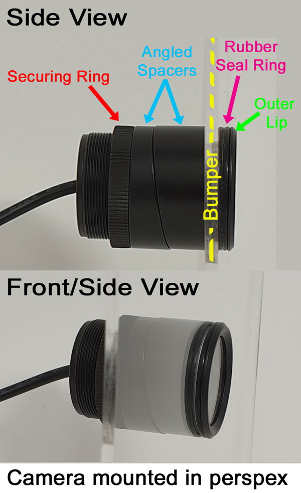 The bumper camera is designed to be discreet, we supply a 28mm hole saw to use on a drill, the camera then inserts in to this hole and you screw locking rings to the rear to fix it in position.