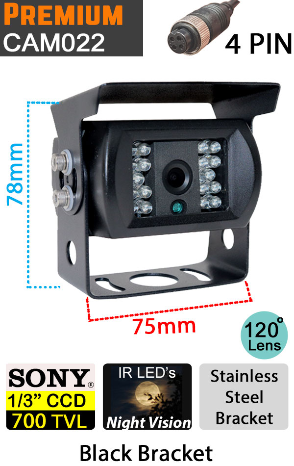 CAM022 - Black bracket reversing camera - Sony 1/3" 700TVL CCD sensor - 4 pin connector