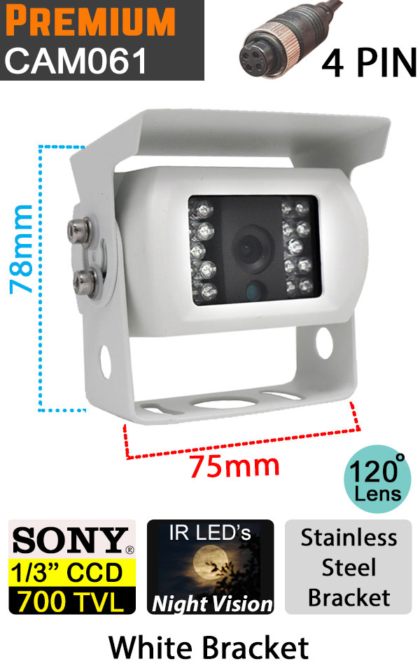 CAM061 - White bracket reversing camera - Sony 1/3" 700TVL CCD sensor - 4 pin connector