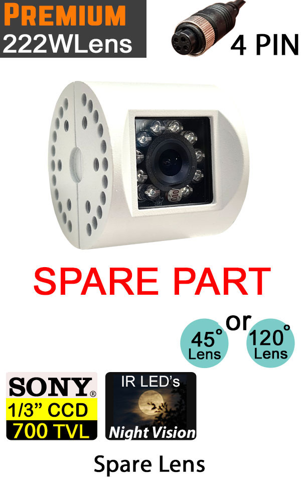 Replacement Spare Lens for White twin lens Camera - Choice of 45° rear view or 120° reversing camera - Sony 1/3" 700TVL CCD sensor - 4 pin connectors - CAM222WLens