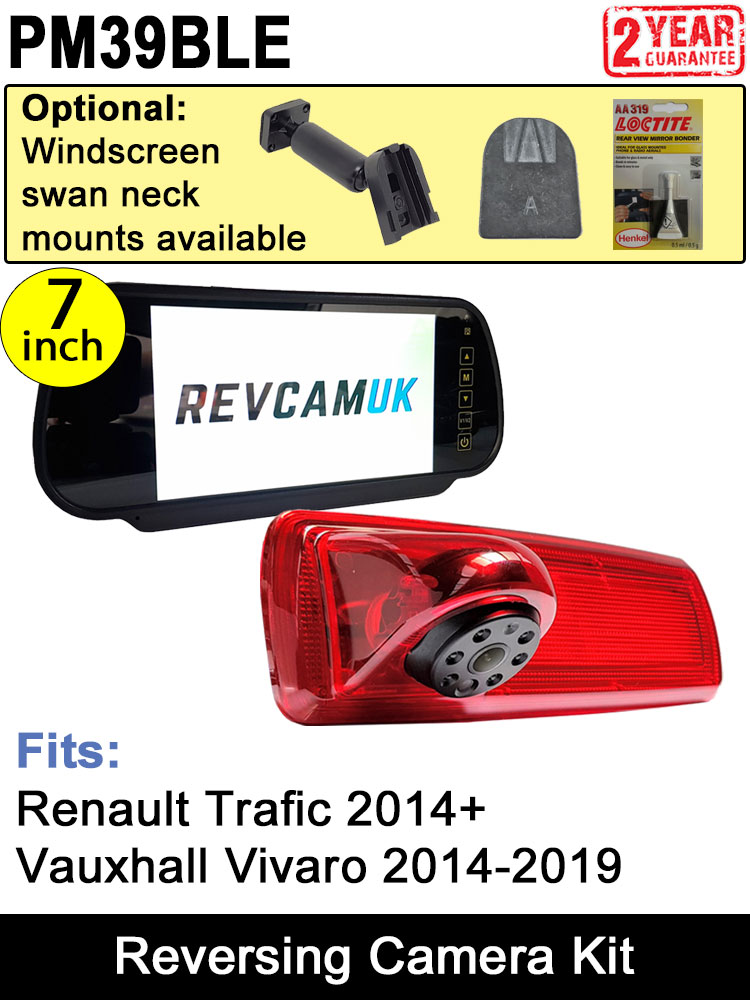 This listing is for our brake light reversing camera kit with clip over mirror monitor to fit Vauxhall Vivaro vans built between 2014 and 2019, and Renault Trafic vans built between 2014 and present day.