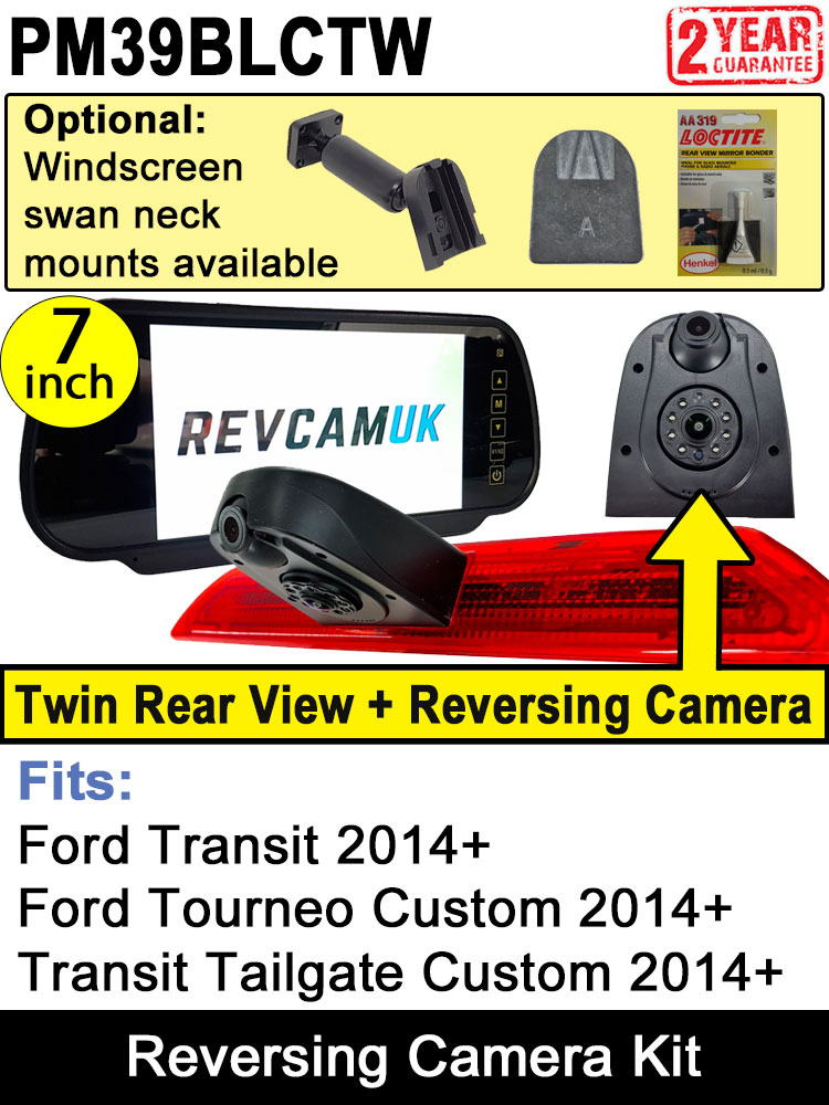 Ford Transit 2014+ Twin Lens Brake Light Reversing + Rear view Camera Kit with 7" Mirror Monitor | PM39BLCTW