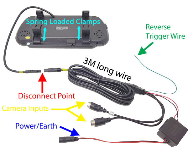This camera is supplied with approx 1ft fly lead with a 4-pin aviation connector at the end. We prefer the 4-pin version because it means a monitor can provide power to the camera, and this avoids CANBUS issues that can occur if taking power from the reverse light. The monitor we use provides power down an all-in-one screw together cable making fitting easy.