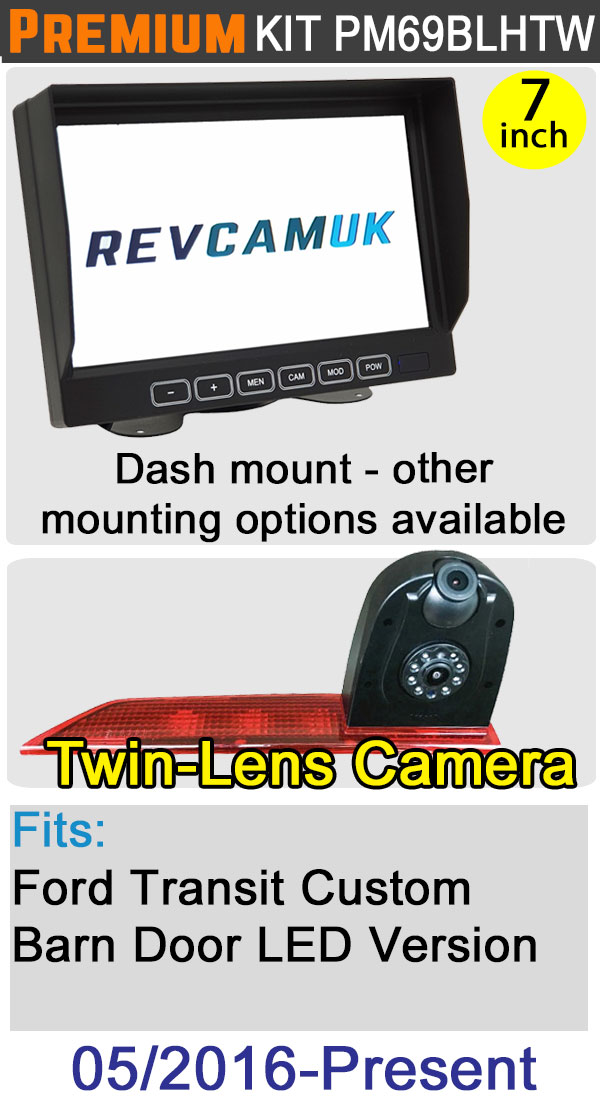 PM69BLHTW: Twin Lens Brake Light Reversing Camera Kit with 7" Hi-Res Dash Monitor for Ford Transit custom 05/2016-Present (LED Version)