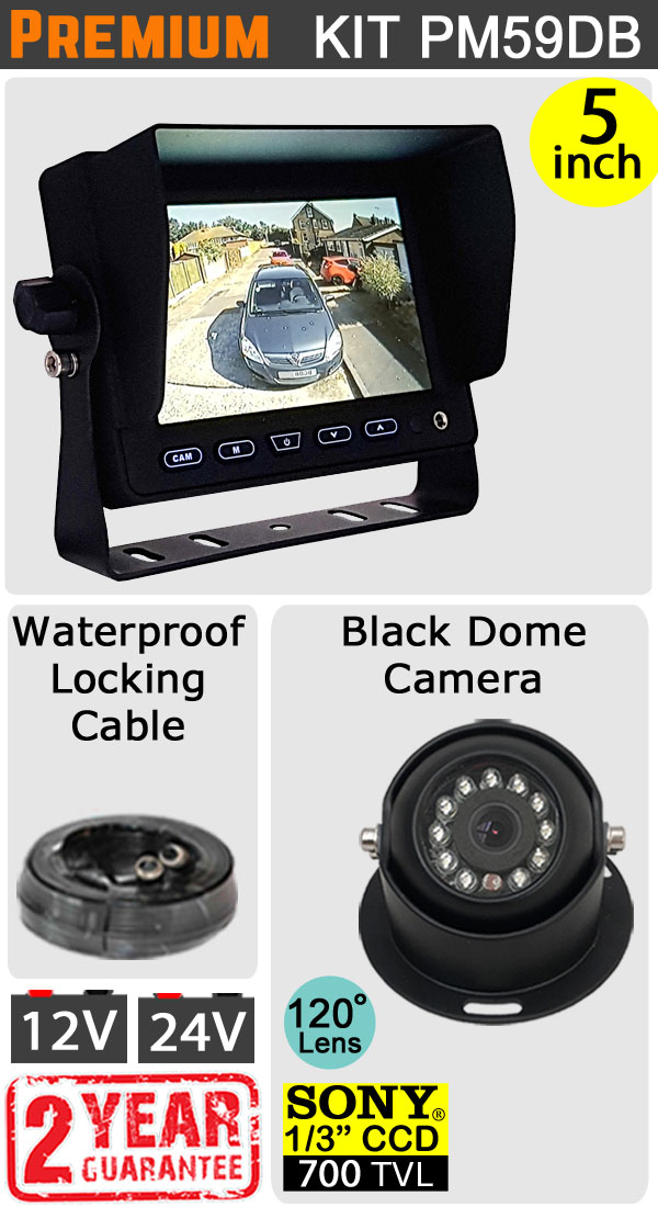 This kit comes with our 5" compact dash monitor and a black dome reversing camera, which uses the very respectable 1/3" Sony CCD 700TVL image sensor.