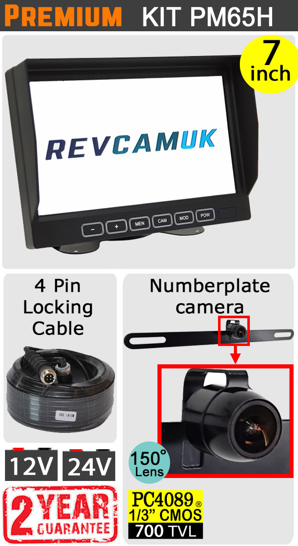 7" Slimline Monitor + Behind Number Plate Bracket Reversing Camera Kit | PM65H