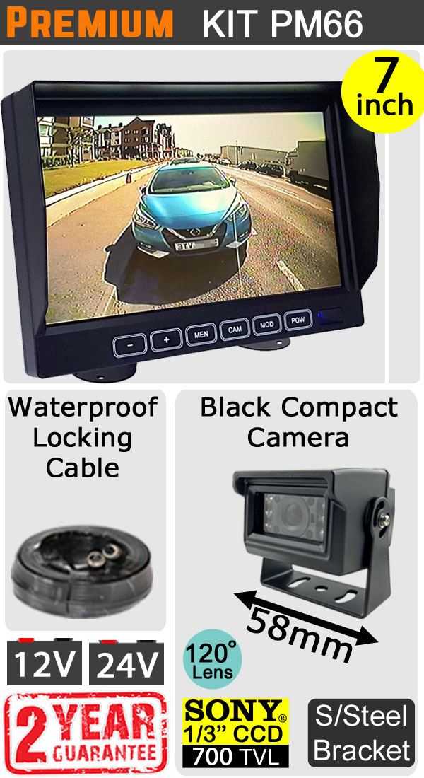 PM66 - Kit with 7" dash monitor + cable + Sony CCD compact black bracket reversing camera