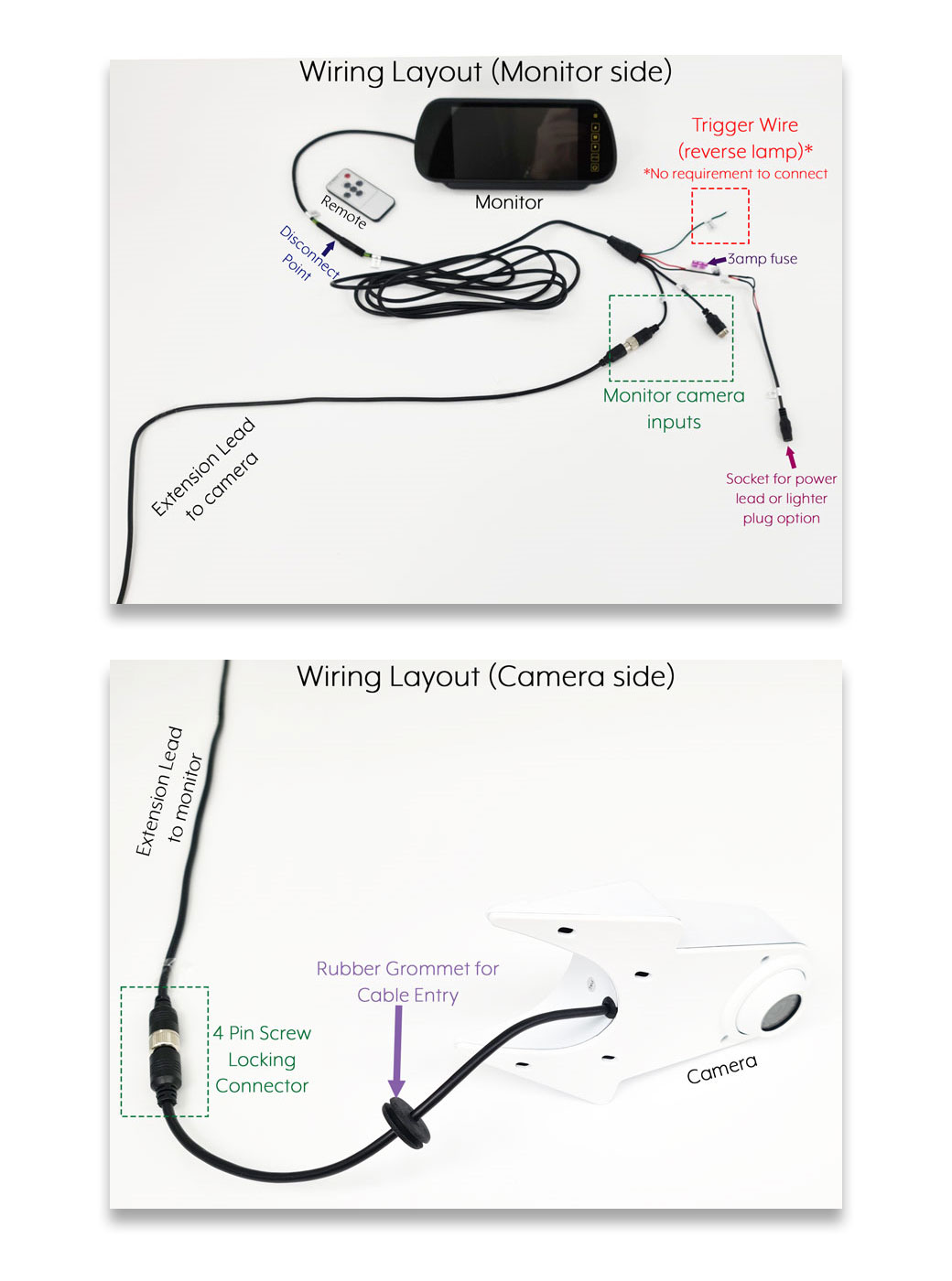 For all of our cabled reversing camera kits