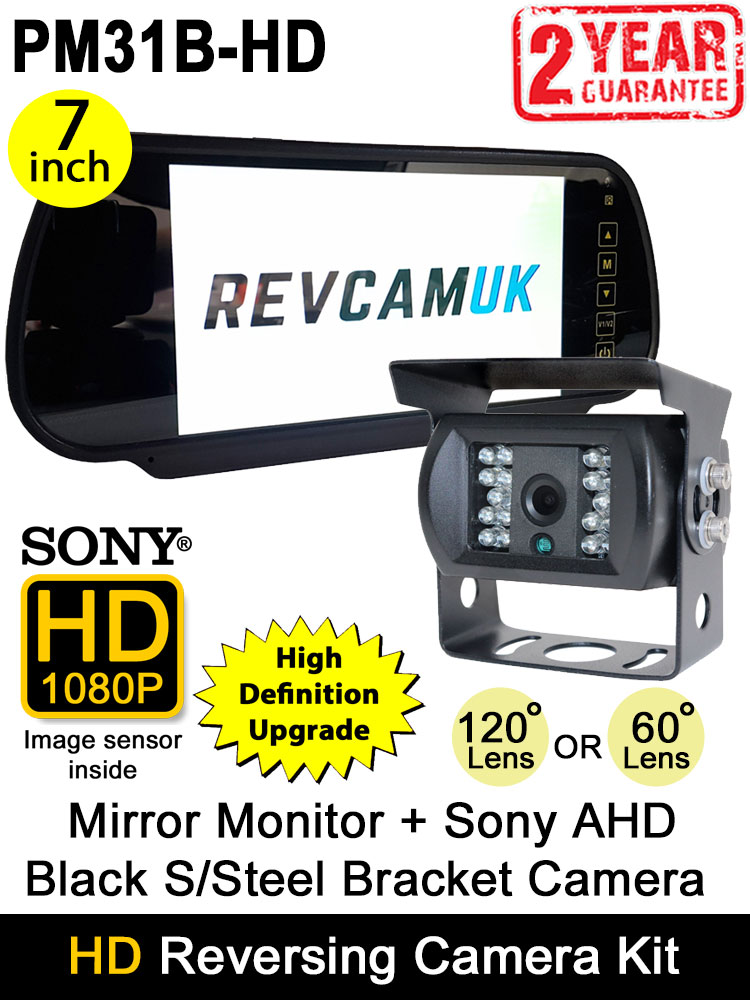 7" Mirror Monitor + Black Sony AHD High Definition Bracket Reversing or Rear View Camera Kit | PM31B-HD