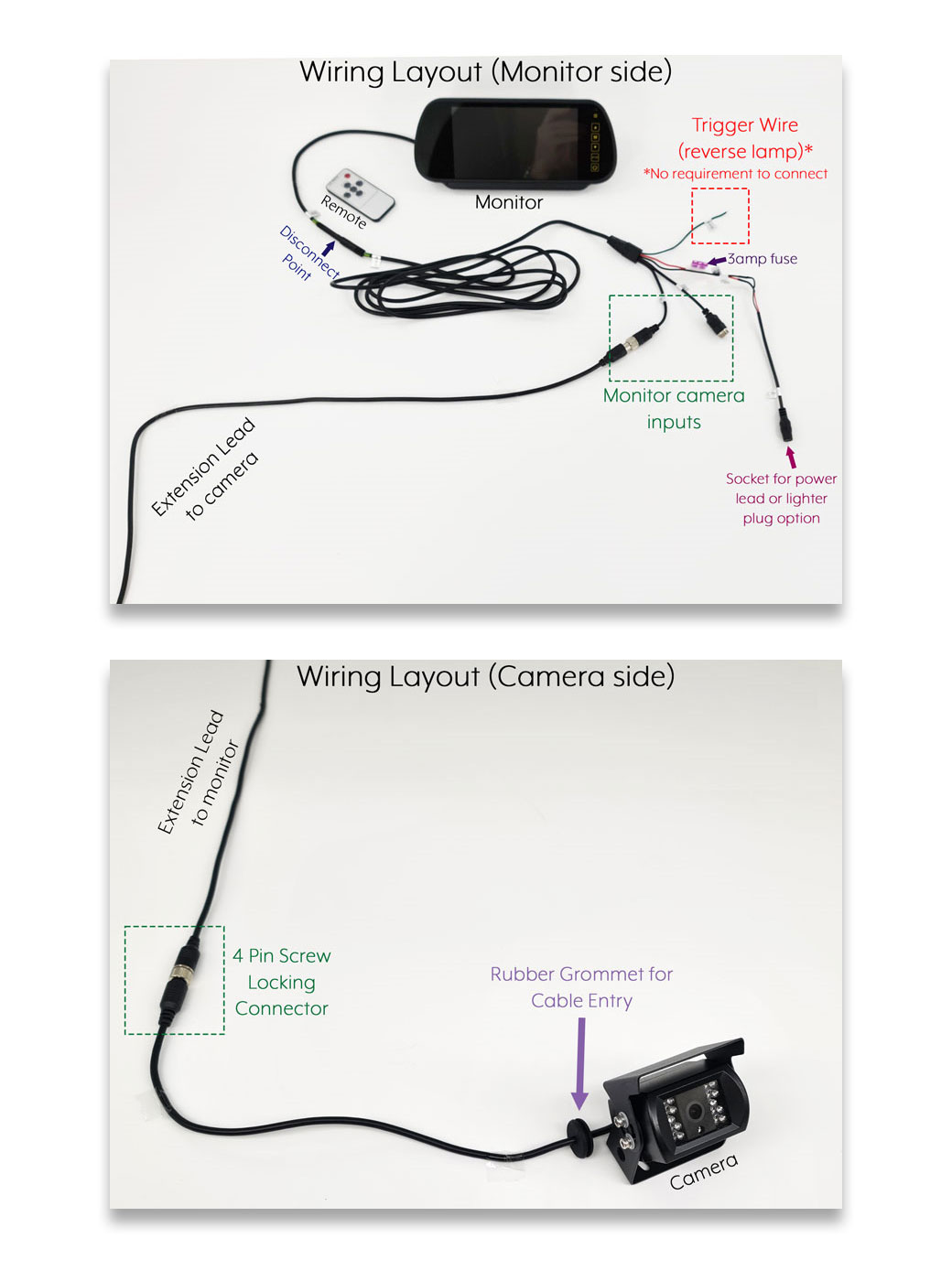 For all of our cabled reversing camera kits