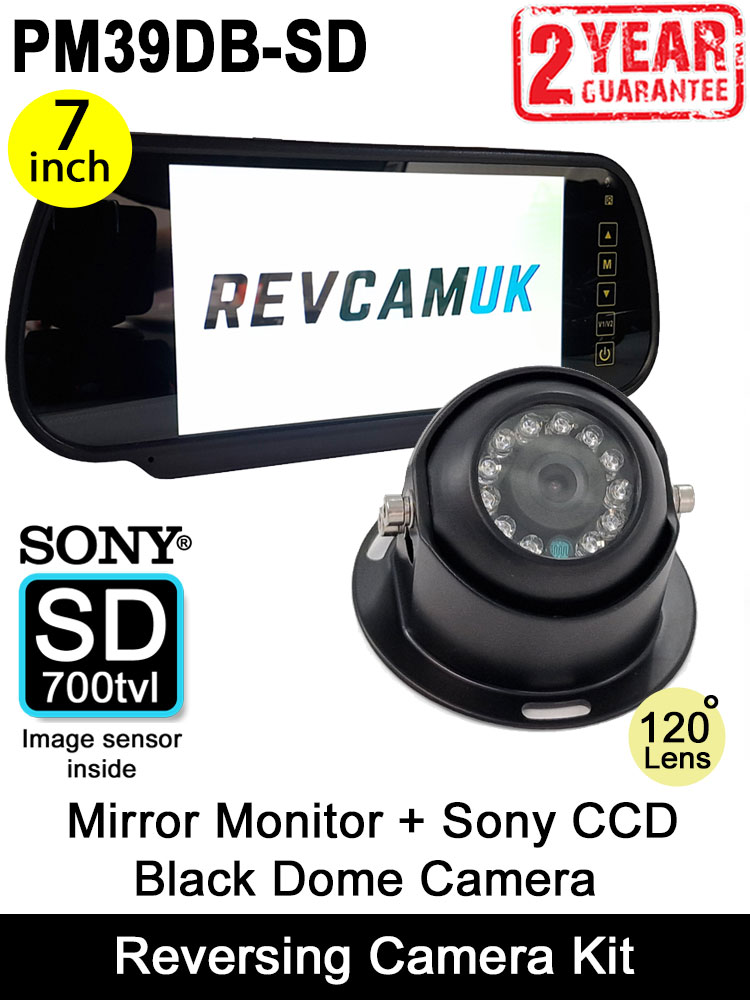 7" Mirror Monitor + Black Sony CCD Dome Reversing Camera Kit | PM39DB-SD