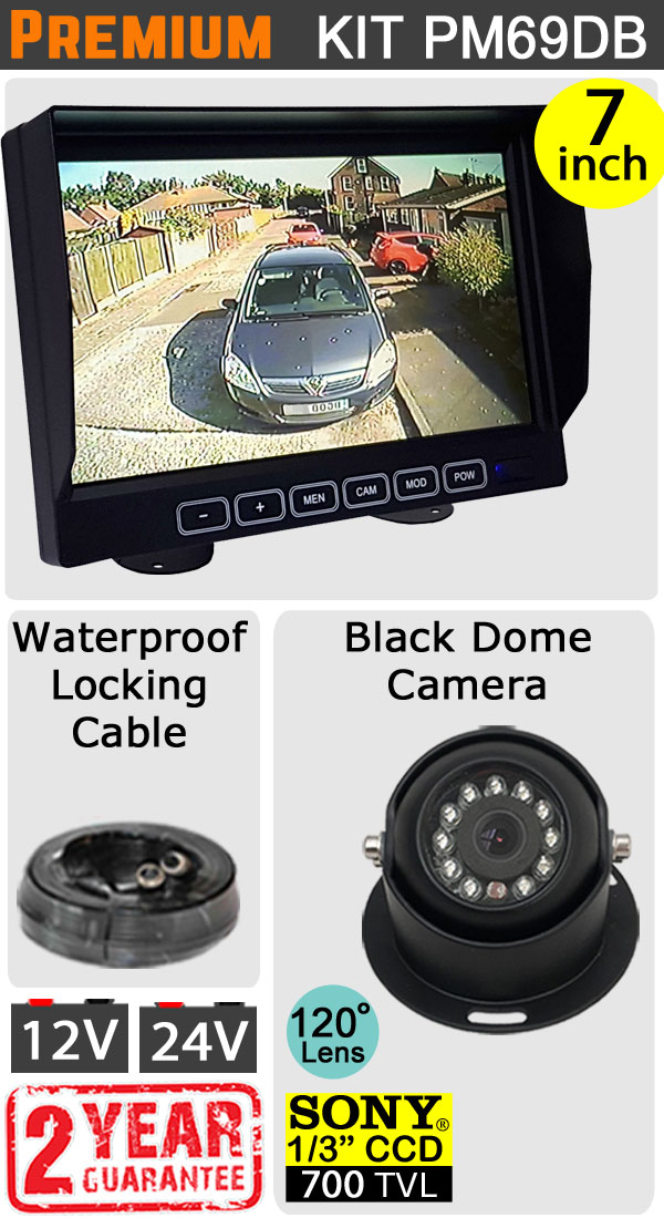 PM69DB - Kit with 7" dash monitor + cable + Sony CCD black dome reversing camera
