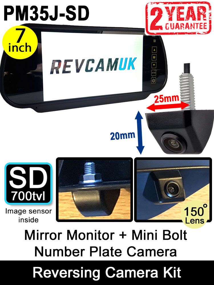 7" Mirror Monitor and Number Plate Bolt Reversing Camera Kit | PM35J