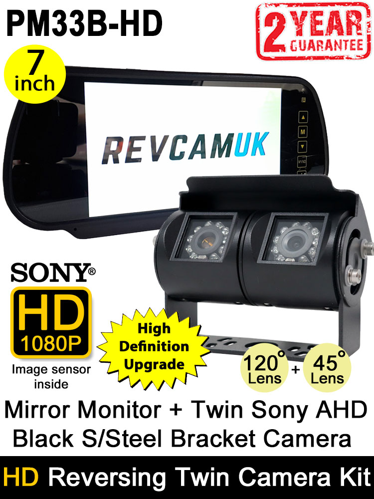 7" Mirror Monitor + Black Bracket Sony AHD Twin View Reversing + Rear View Camera Kit | PM33B-HD
