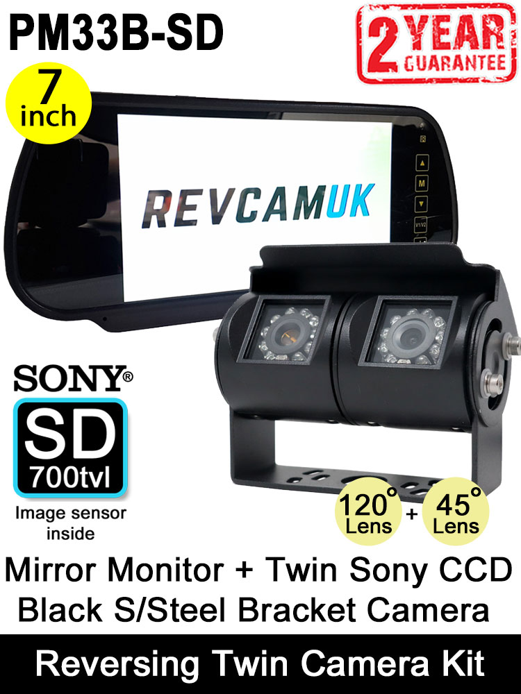 7" Mirror Monitor + Black Bracket Sony CCD Twin View Reversing + Rear View Camera Kit | PM33W-SD