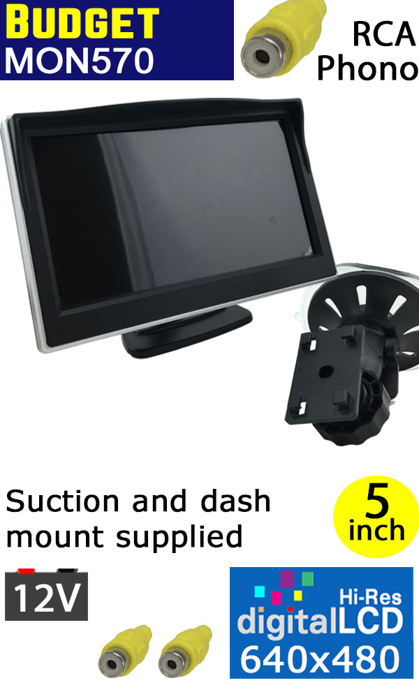 5" suction/dash monitor with 2 RCA/Phono inputs for reversing camera | MON570