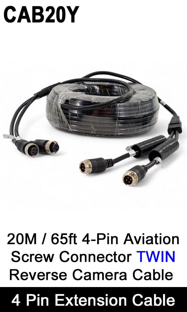CAB20Y - Twin 4 Pin Extension Cable for two reversing / rear view cameras - 20M / 65.6FT