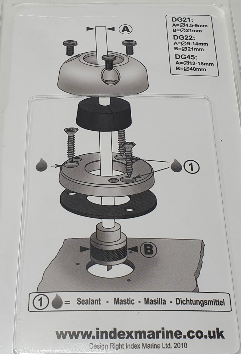 DG21 - Index Marine - IP68 Waterproof Cable Gland - 21mm suitable for single cable entry - Deck Seal