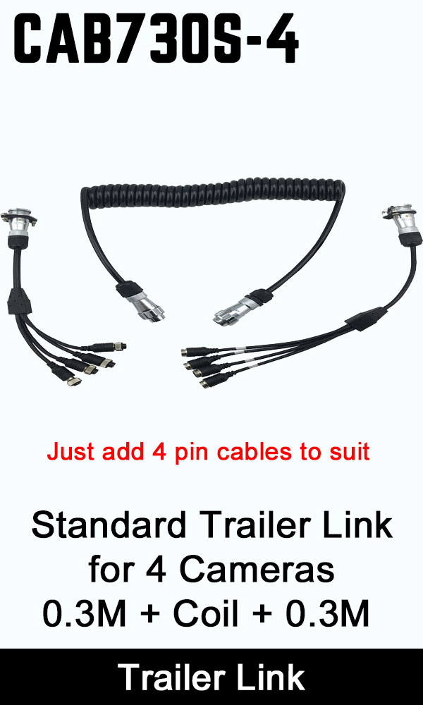 CAB730S-4 - Trailer Link for 4 cameras - 0.3M + Coil + 0.3M (Just add cables to suit)